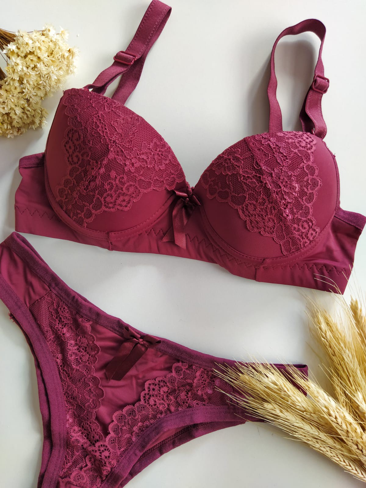 Conjunto Lingerie Calêndula, confeccionado em tecido macio e geladinho. Possui um reforço abaixo do busto, dando mais firmeza, aplicação de renda no bojo para dar aquele toque especial na peça. A calcinha modelo conforto, com detalhes em renda. Você precisa ter essa peça na sua coleção! Perfeita para o dia a dia.