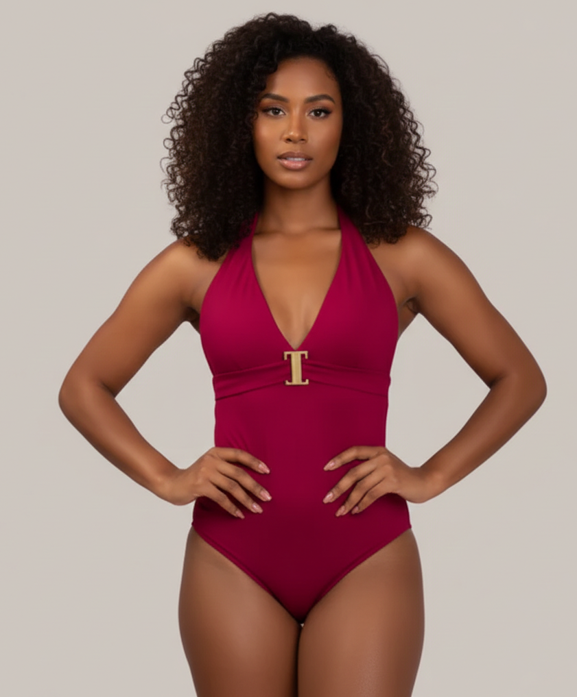 O decote em V frontal alonga a silhueta e traz feminilidade ao visual, enquanto o detalhe dourado adiciona um toque moderno e refinado. A costa nua com amarração garante charme extra e possibilita melhor ajuste, proporcionando segurança e conforto durante o uso. A parte inferior em modelo calcinha completa o design com equilíbrio e discrição.